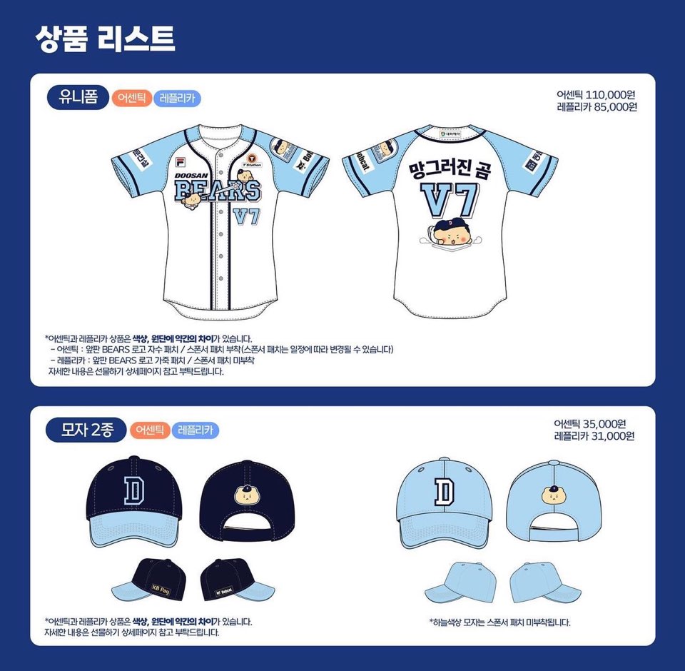 망그러진 곰 x 두산베어스 한정판 굿즈 리스트