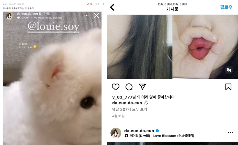 송다은이 자신의 SNS에 올린 게시물에서 지민의 집 내부 소품 및 구조와 유사한 점이 발견되었습니다. 이에 일부 누리꾼들은 두 사람이 동거 중이라는 추측을 제기하기 시작했습니다.